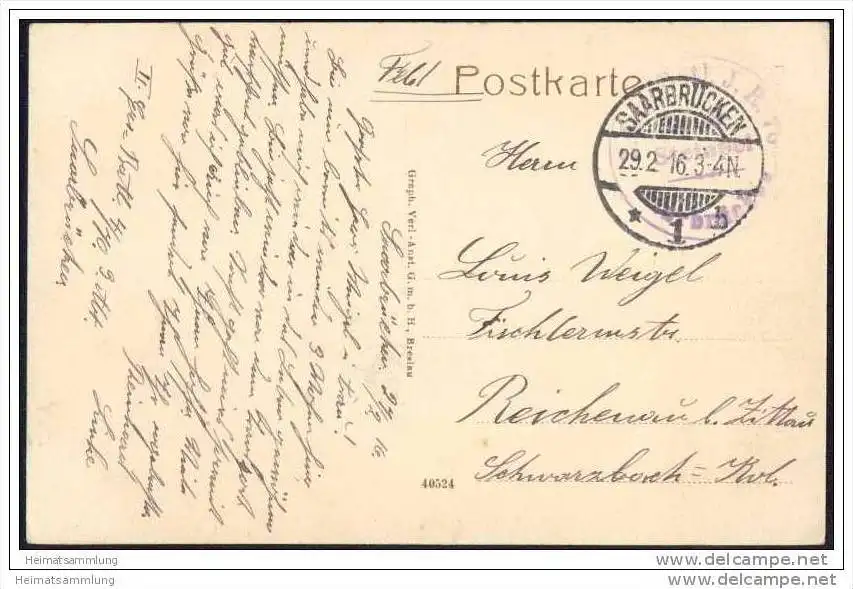 Saarbrücken - Graph. Verl.-Anst. GmbH Breslau - Feldpost (G22084) gel. 1916