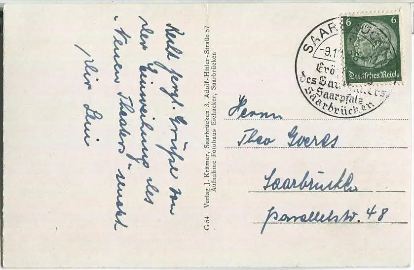 Saarbrücken - Grenzlandtheater - Verlag J. Krämer Saarbrücken (G38287) gel. 1938
