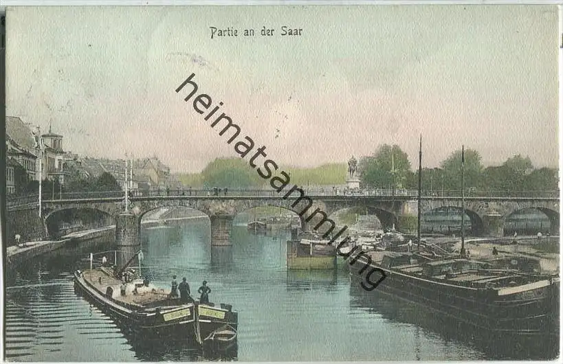 Saarbrücken - Saar - Schiffe - Stempelspur (G38274) gel. 1906