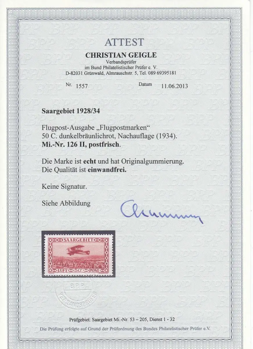 Saargebiet: MiNr. 126 II, postfrisch, BPP Attest