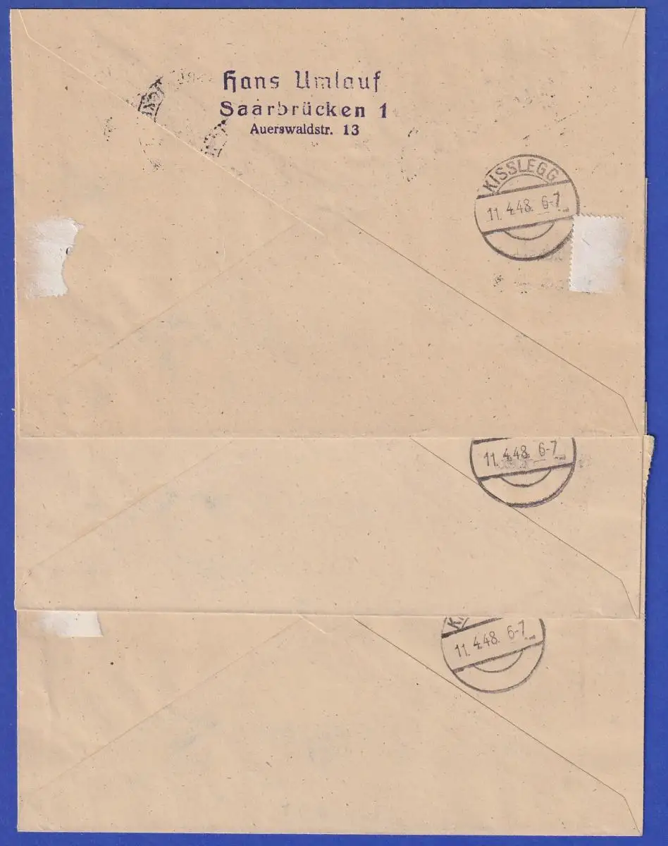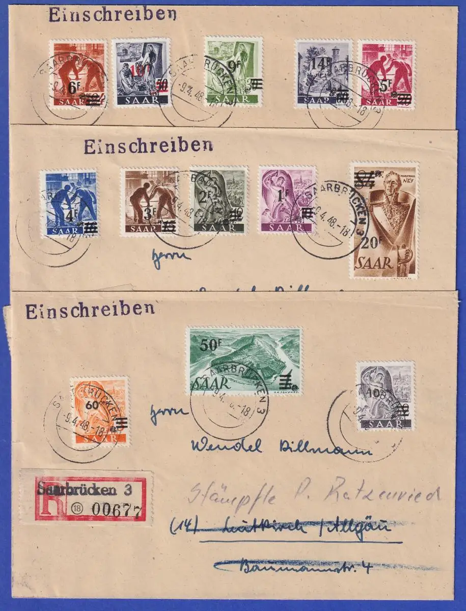 Saarland 1947 Aufdruck-Ausgabe Mi.-Nr. 226-238 Type II Satz auf 3 R-Briefen
