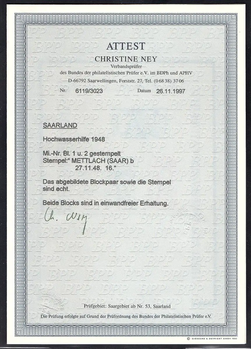 Saarland 1948, Mi.-Nr. Block 1 + 2 gestempelt, FA. NeyBPP.