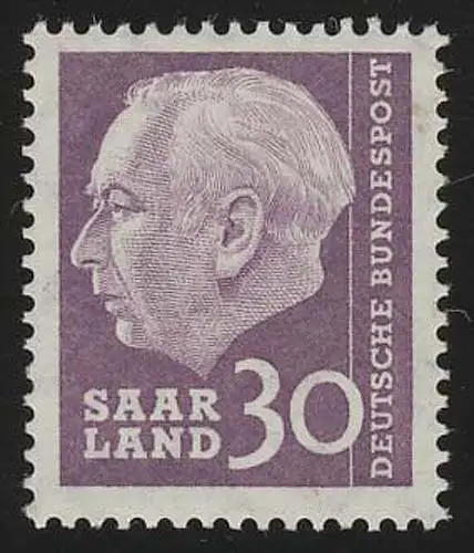 Saarland 391 Heuss 30 (Fr) 1957, **