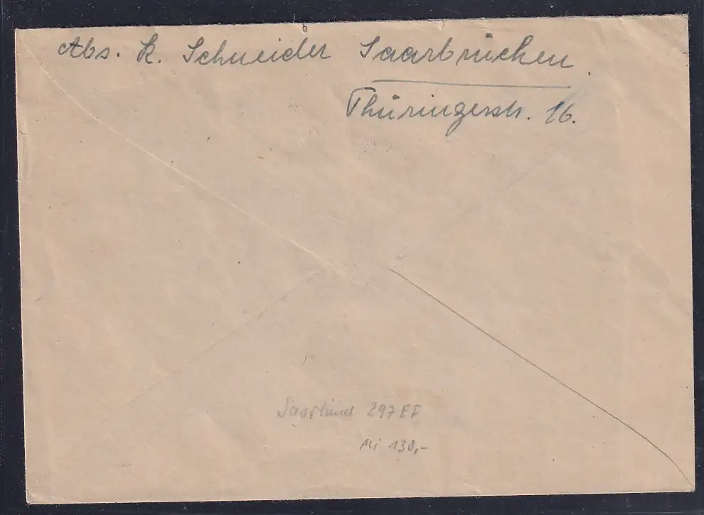 Saarland, Fernbrief mit EF. Mi.-Nr. 297