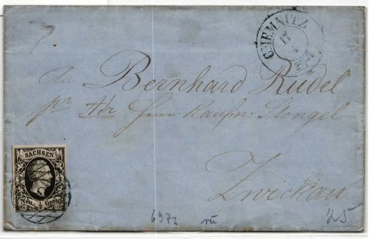 1/2 NGR "Freimarken: König Friedrich August II" auf Fernbrief von Chemnitz nach Zwickau gelaufen.