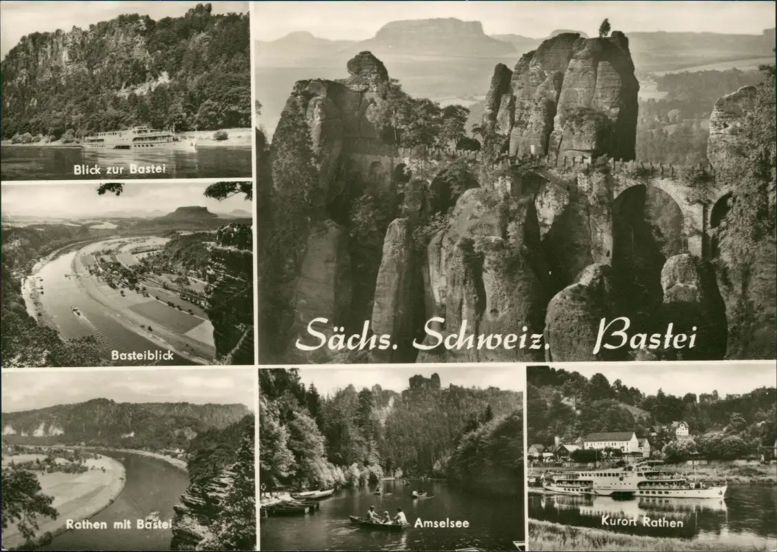 Name: Sächsische Schweiz DDR Mehrbildkarte mit der Bastei, Elbe, Elbe-Dampfer