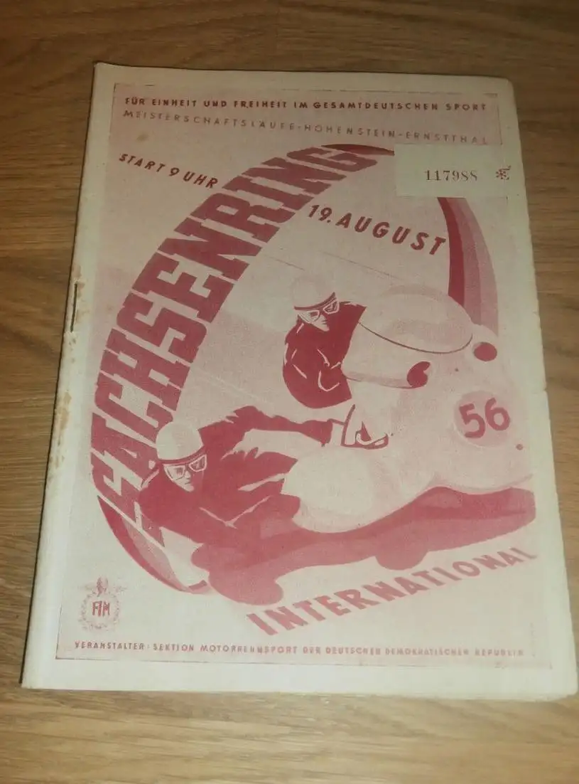Sachsenring Weltmeisterschaft 19.08.1956 , Motorradrennen , Programmheft / Programm / Rennprogramm , program !!!