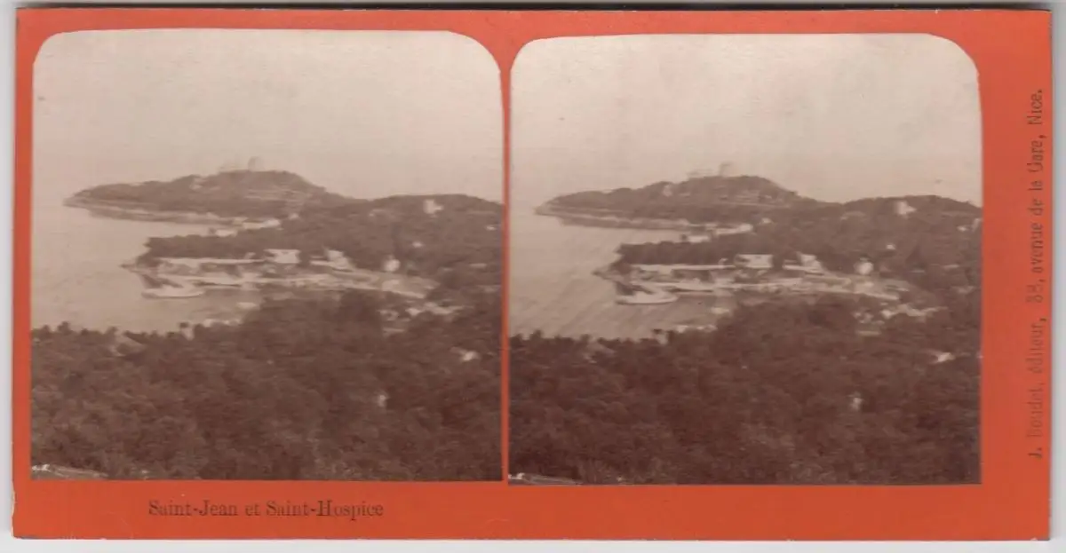 Nice, J. Boudet [ca. 1875]. 2 Orig.-Photographien (Albumen) zu einer Stereophotographie auf Karton mont. ca. 8, 6 x 16, 8 cm. In sehr gutem Zustand.