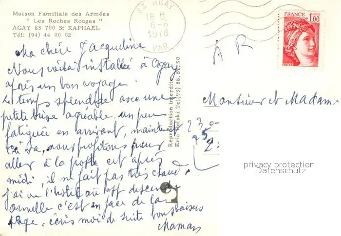 Saint-Raphael_Var Maison Familiale des Armees Les Roches Rouges Saint-Raphael Var postalisch gelaufen 1978 Erhaltung siehe scans [WerneD78] WernPID7
