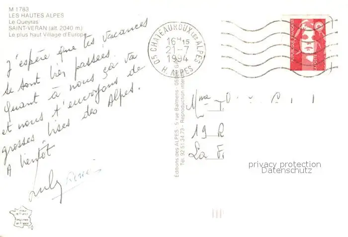 Saint-Veran Le plus haut village d'Europe Hautes Alpes Saint-Veran postalisch gelaufen 1994 Erhaltung siehe scans [FriedD77] Frierer