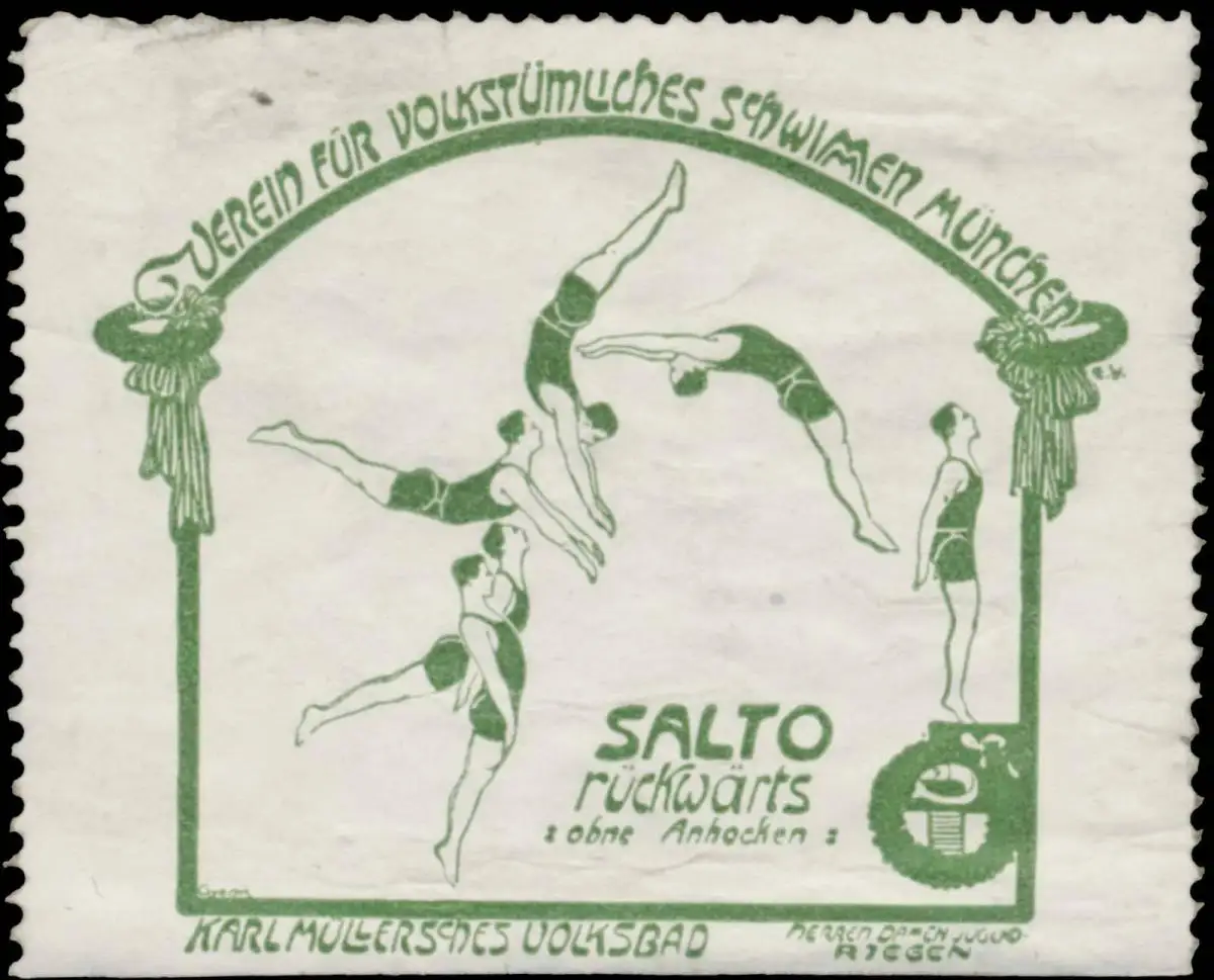 Karl Müllersches Volksbad, Herren-Damen-Jugendabteilung, Sport, Größe/Zustand: 6x4 , beschädigt, Original alte Reklamemarke die seinerzeit für die Werbung benutzt wurde