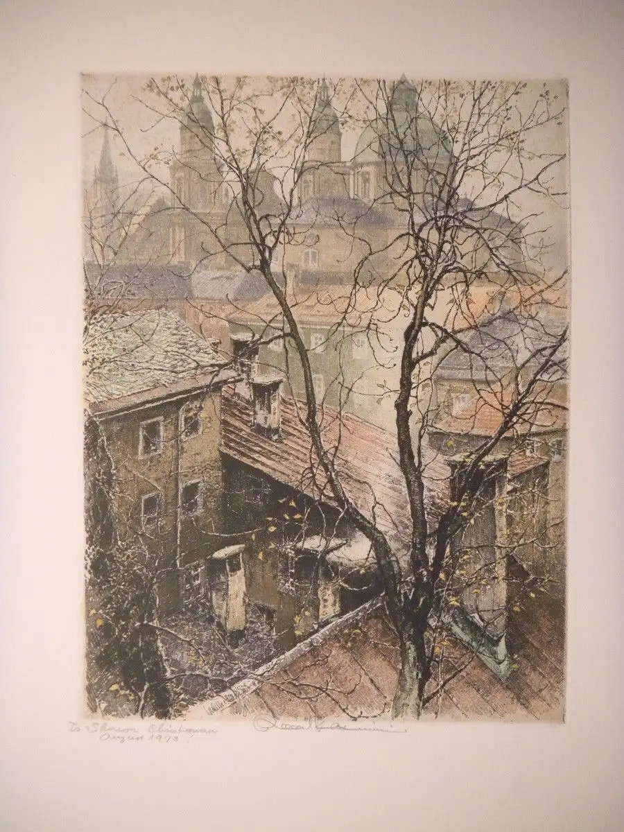 1973. Orig.-Farbradierung / Orig. coloured etching. 52 x 42 cm. (Blattgr.); 36 x 27 cm. (Plattengr.). In sehr gutem Zustand.