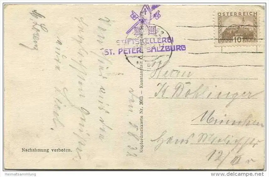 Salzburg - Stiftskeller St. Peter - Richard-Stübl - Verlag C. Jurischek Salzburg (E12183) gel. 1932