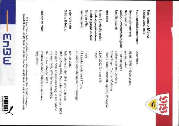 Sammelbild Fußballspieler Fernando Meira, VfB Stuttgart, Autogramm