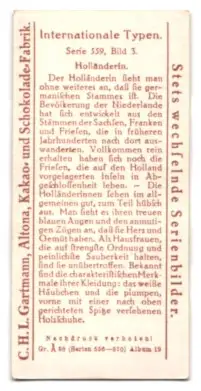 Sammelbild Gartmann Schokolade, Niederländerin mit weisser Haube