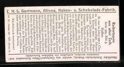 Sammelbild Gartmann`s Chocolade, Reitertypen aus alter Zeit, Gallier