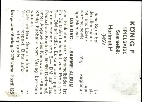 Sammelbild Hartmut Heidemann, Fußballer, Portrait, Autogramm