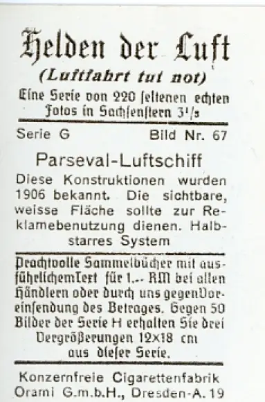 Sammelbild Helden der Luft Serie G Bild 67 Parseval-Luftschiff