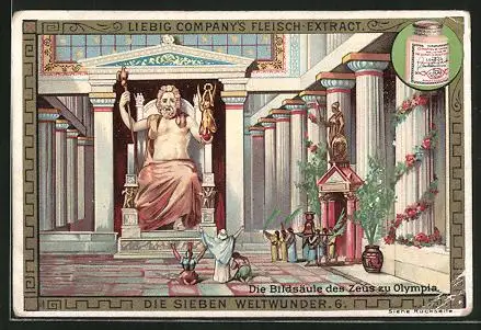 Sammelbild Liebig, Die sieben Weltwunder, 6, Die Bildsäule des Zeus zu Olympia