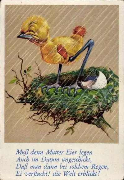 Sammelbild Lustige Bilder Nr. 144, Küken in einem Nest im Regen