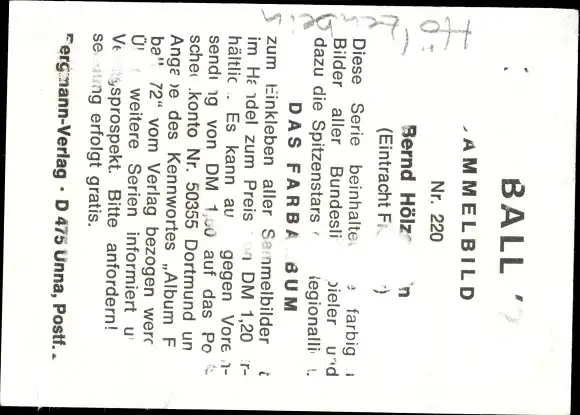 Sammelbild Nr. 220 Bernd Hölzenbein, Fußballer, Portrait, Autogramm