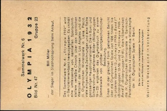 Sammelbild Olympia 1932, Bill Miller, Stabhochsprung