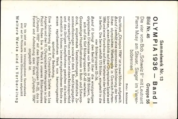 Sammelbild Olympia 1936, Bob Schweiz II, Pierre Musy