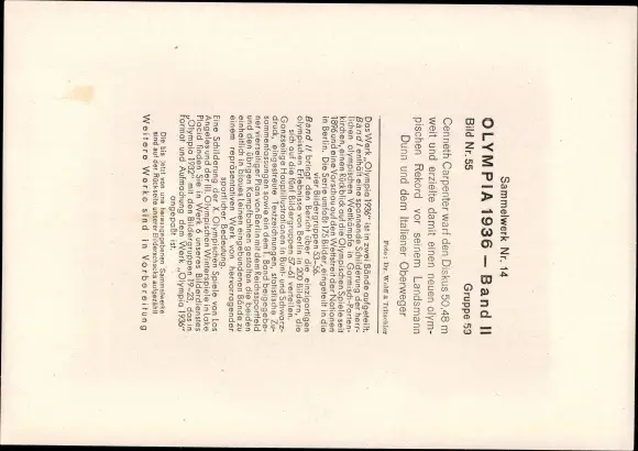 Sammelbild Olympia 1936, Diskuswerfer Cenneth Carpenter