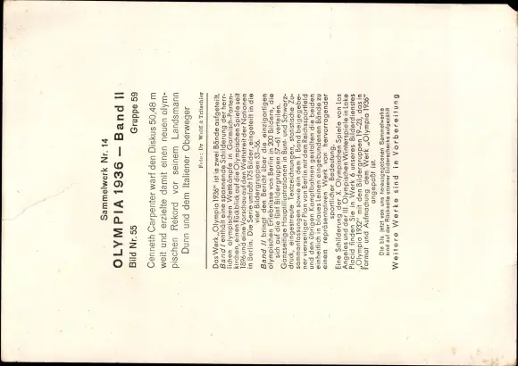 Sammelbild Olympia 1936, Diskuswerfer Cenneth Carpenter