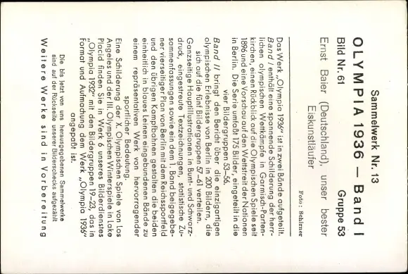 Sammelbild Olympia 1936, Eiskunstläufer Ernst Baier