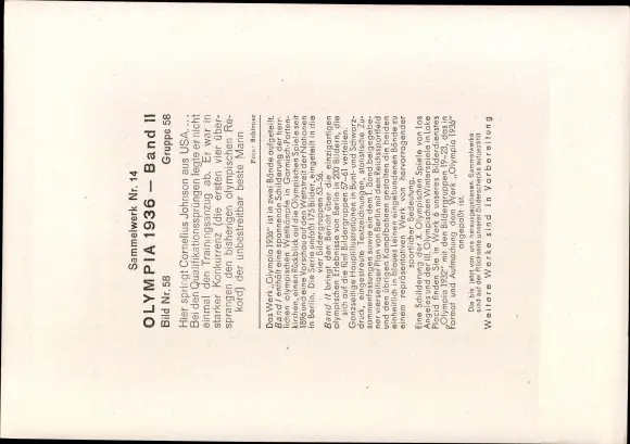 Sammelbild Olympia 1936, Hochspringer Cornelius Johnson