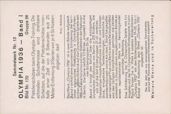 Sammelbild Olympia 1936, Pistolenschützen beim Training