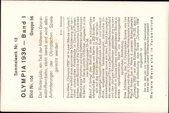 Sammelbild Olympia 1936, Reiterplatz, ehem. Grunewald Rennbahn