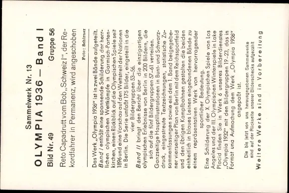 Sammelbild Olympia 1936, Reto Capadrutt, Bob Schweiz I