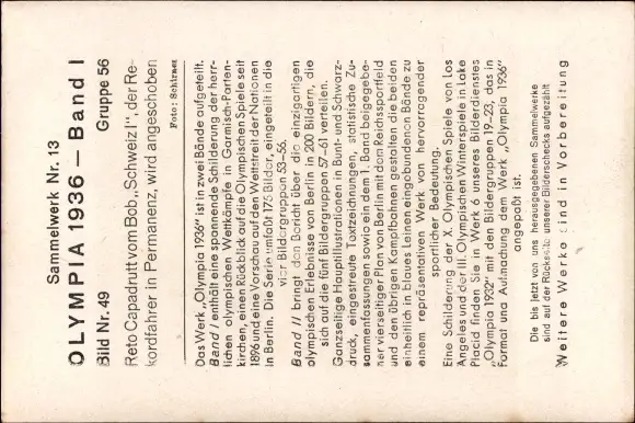 Sammelbild Olympia 1936, Reto Capadrutt, Bob Schweiz I