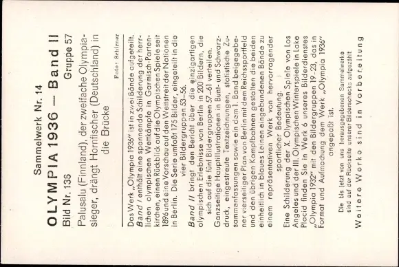Sammelbild Olympia 1936, Ringer Palusalu und Hornfischer