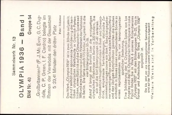 Sammelbild Olympia 1936, Viererbob Großbritannien I