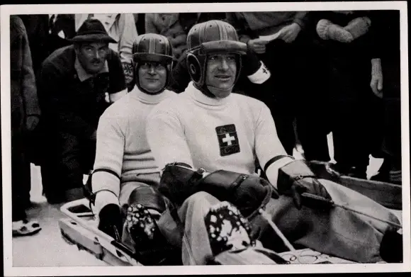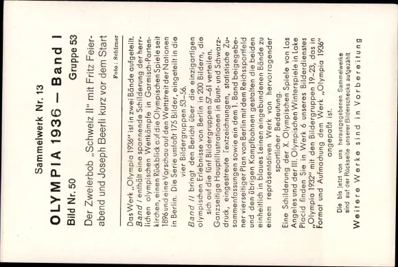 Sammelbild Olympia 1936, Zweierbob Schweiz II, Fritz Feierabend, Joseph Beerli
