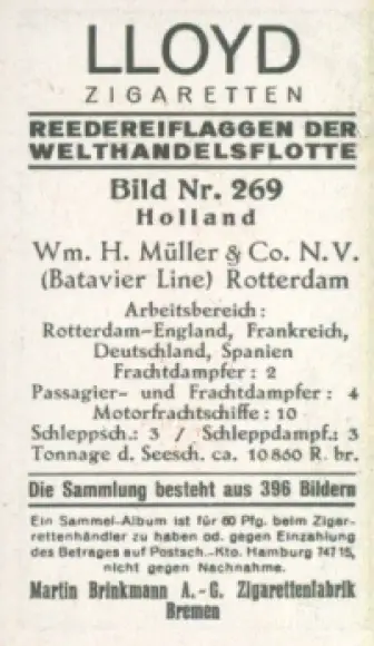 Sammelbild Reedereiflaggen der Welthandelsflotte Nr. 269, Batavier Line, Rotterdam
