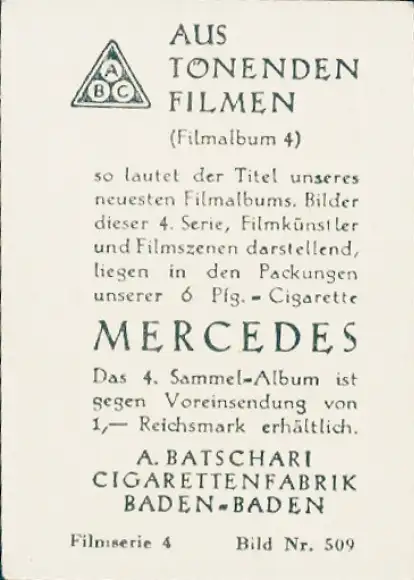 Zustand, siehe Scan, ungelaufen- Zigarettenfabrik Baden-Baden, Filmalbum Aus Tönenden Filmen - ca 5 cm X 7 cm