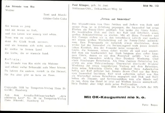 Sammelbild Schauspieler Paul Klinger, Portrait, Ferien auf Immenhof