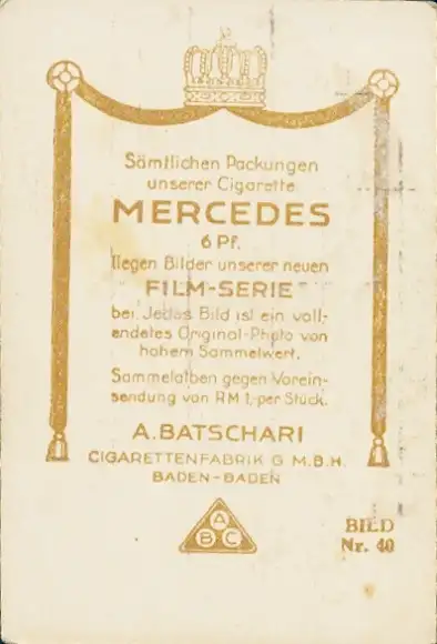 Zustand, siehe Scan, ungelaufen- Zigarettenfabrik Baden-Baden, Zigarette Mercedes - ca 5 cm X 8 cm