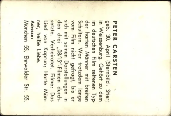 Sammelbild Schauspieler Peter Carsten, Portrait