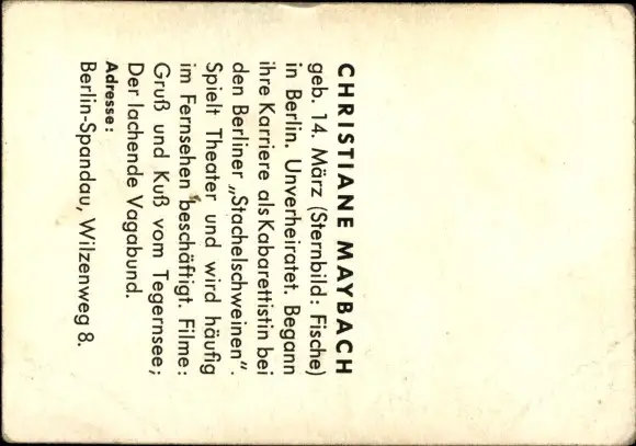 Sammelbild Schauspielerin Christiane Maybach, Portrait