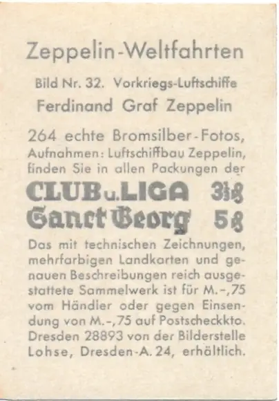 Sammelbild Zeppelin-Weltfahrten Bild 32 Vorkriegs-Luftschiffe, Ferdinand Graf Zeppelin