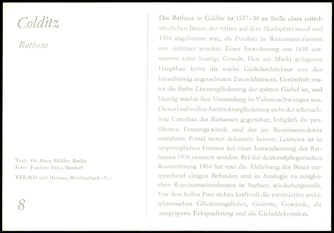 Sammelkarte Colditz Rathaus - Chronikkarte 1975