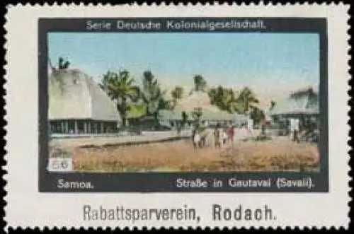 Straße in Gautavia Savai. Serie: Deutsche Kolonialgesellschaft, Berlin, Größe/Zustand: 5x7 , guter Zustand, Original alte Reklamemarke die seinerzeit für die Werbung benutzt wurde