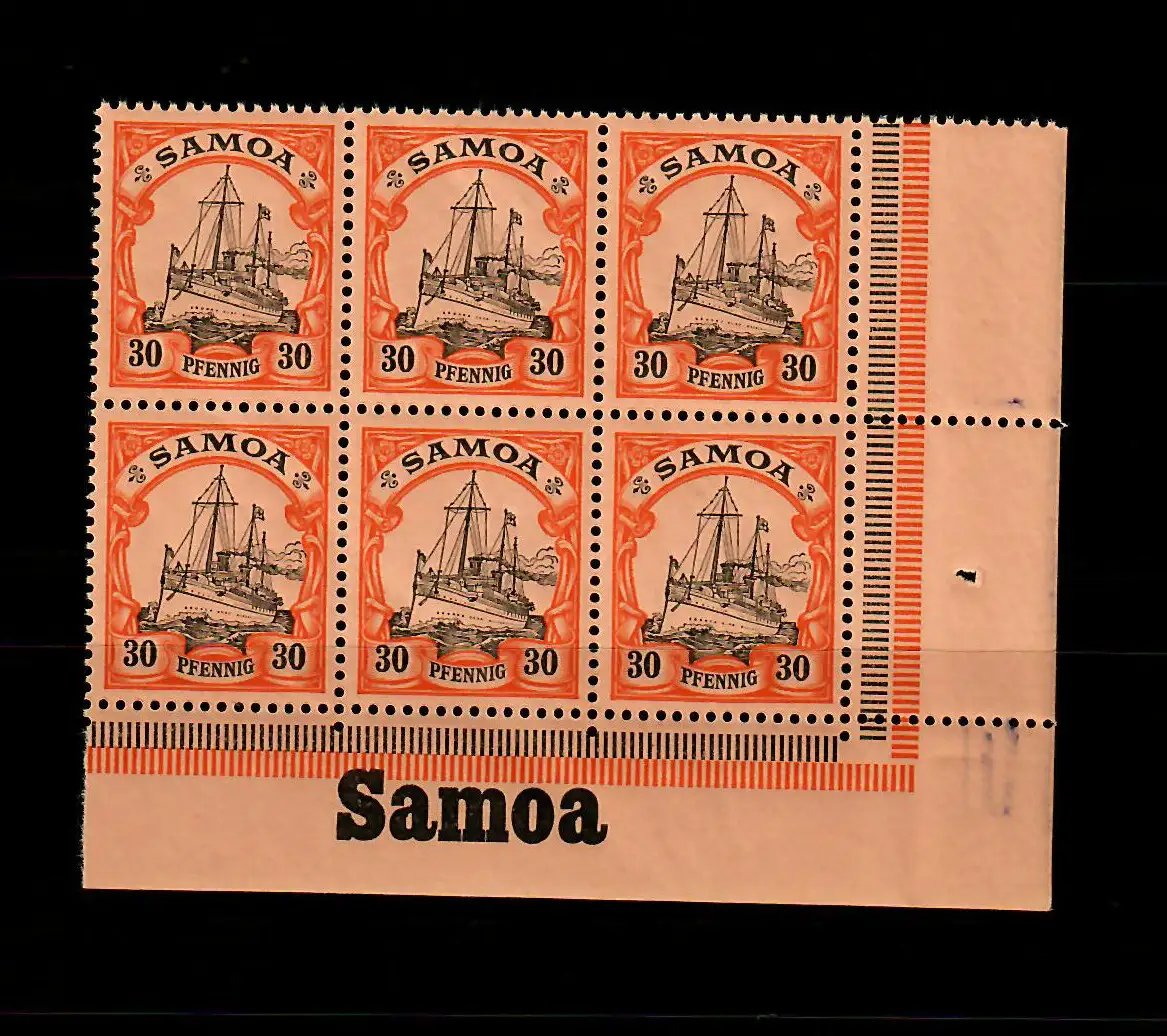 Samoa: MiNr. 12, 6er Block vom Eckrand rechts mit Inschrift, postfrisch, **