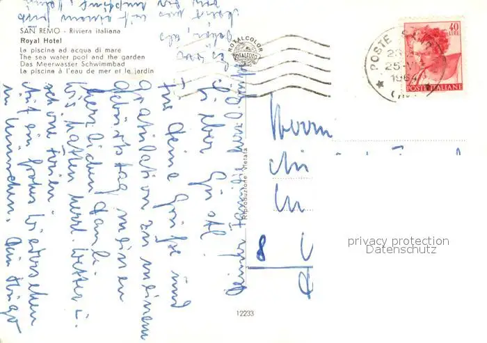 San Remo Royal Hotel San Remo postalisch gelaufen 1964 Erhaltung siehe scans [KathaD81] Kathoren