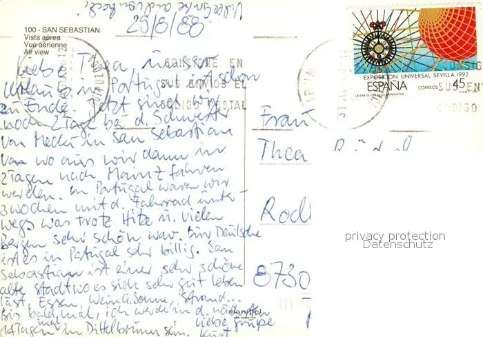 San_Sebastian_Guipuzcoa Vista aérea San_Sebastian_Guipuzcoa postalisch gelaufen 1988 Erhaltung siehe scans [FriedD77] Frierer